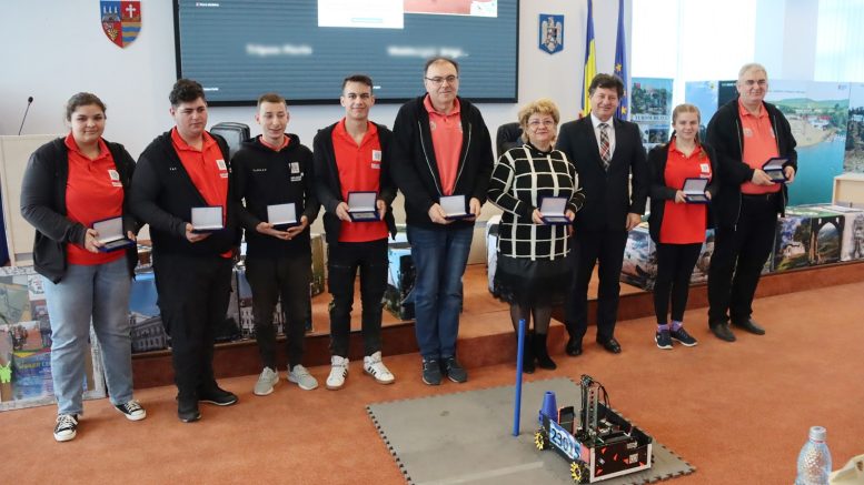 Iustin Cionca, președintele Consiliului Județean Arad, i-a felicitat astăzi pe membrii echipei Robot Team Alpha a Liceului Special „Sfânta Maria”, pentru rezultatele deosebite obținute la Campionatul Național de Robotică First Tech Challenge, desfășurat săptămâna trecută, la București. Echipa arădeană a obținut Premiul Special „Nație prin Educație”, fiind sigurul liceul special înscris în competiție.