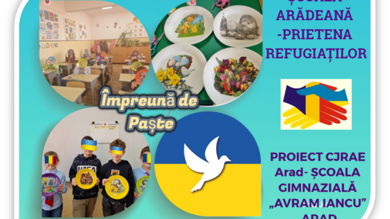 Directorul prof. Petru Stana şi directorul adjunct prof. Simona Muscă, din cadrul Şcolii Gimnaziale „Avram Iancu ” din Arad, parteneră în cadrul acestui proiect, au făcut tot posibilul astfel încât copiii din Ucraina să fie primiţi cu căldură de o comunitate școlară prietenoasă, în care există loc pentru istoria și perspectiva fiecăruia, pentru dialog și cunoașterea reciprocă. Mai mult decât atât, elevii din clasa a III-a A, împreună cu noii lor prieteni din Ucraina, primiți cu bucurie în colectivul clasei, au realizat în cadrul activităților artistico-plastice „ Împreună de Paște” obiecte decorative pentru acasă, folosind tehnica șervețelului. Astfel, în așteptarea Iepurașului, ei au decupat și lipit modele pascale pe suporturi din carton, fiind îndrumaţi de prof. logoped Corina Don şi prof.înv. primar Antoneta Ghinea.