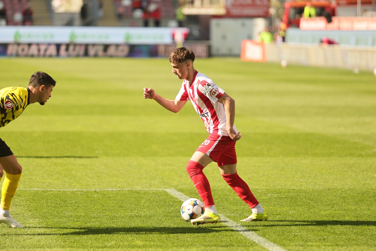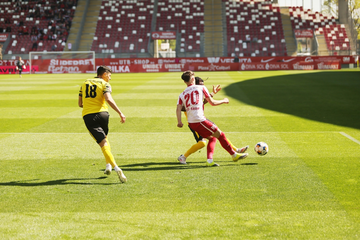Chiar înainte de pauză (min. 44), UTA și-a dublat avantajul. Flavius Iacob, una dintre noutățile lui Mihalcea pentru acest meci, a răsplătit încrederea antrenorului cu o execuție de finețe: preluare elegantă și șut la colțul lung, ducând scorul la 2-0.