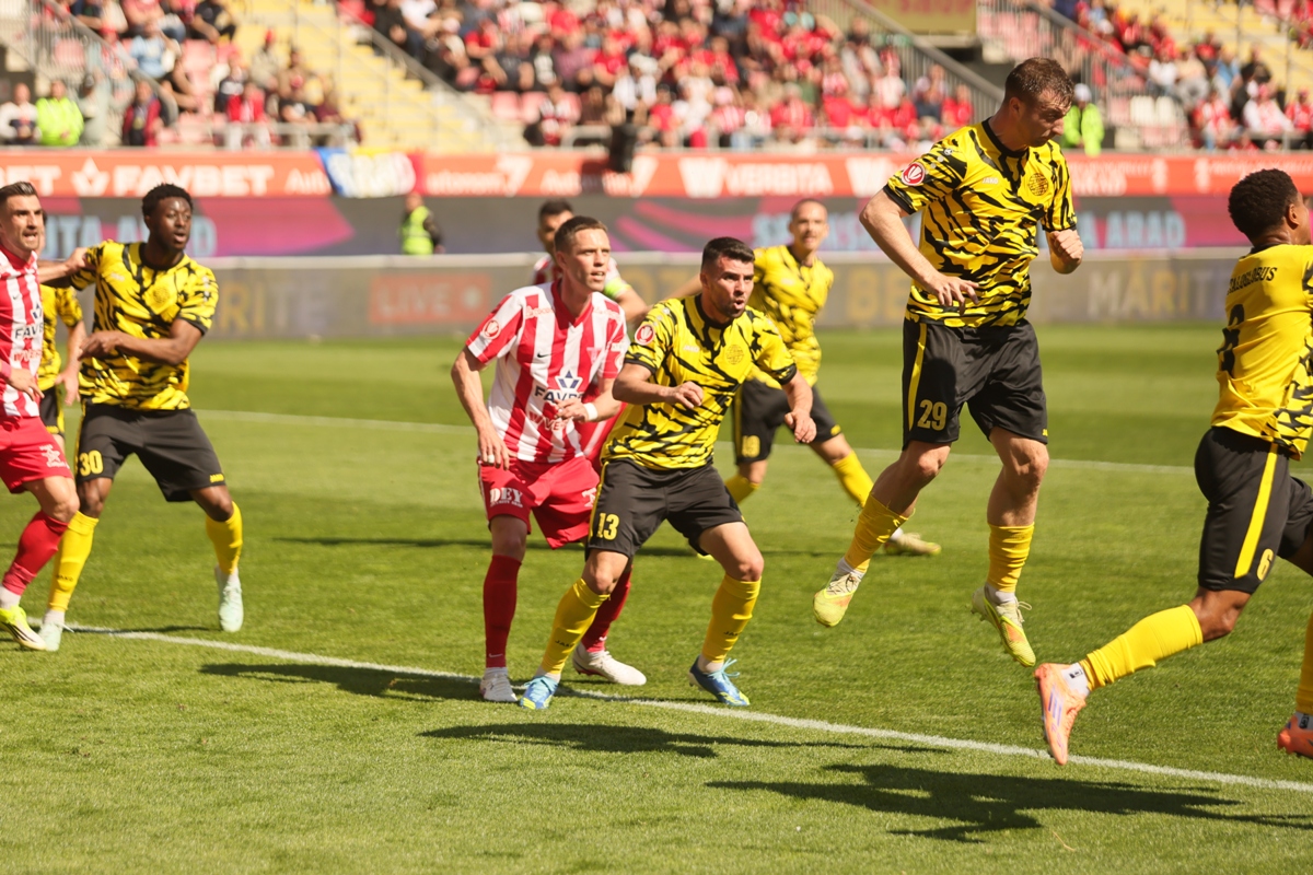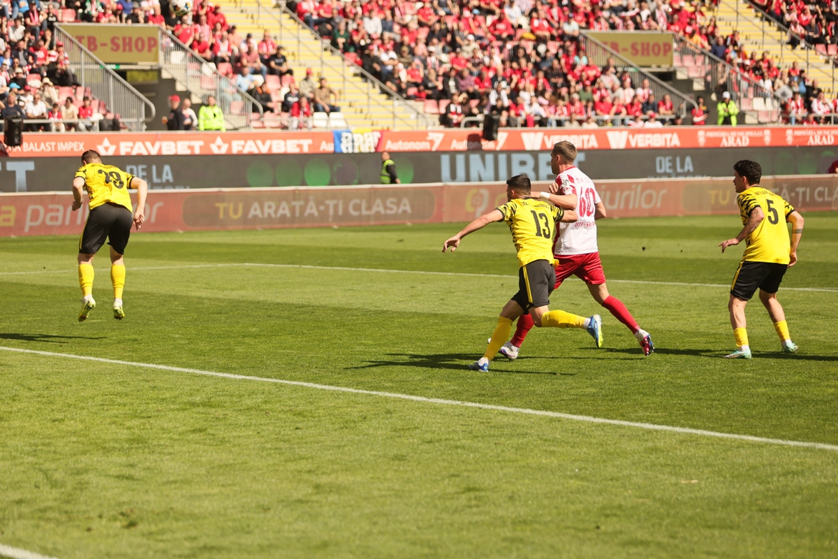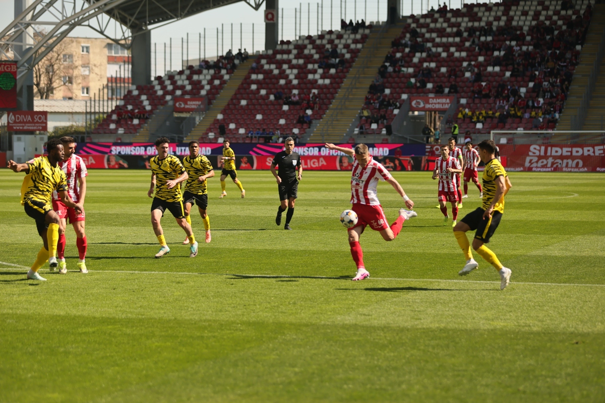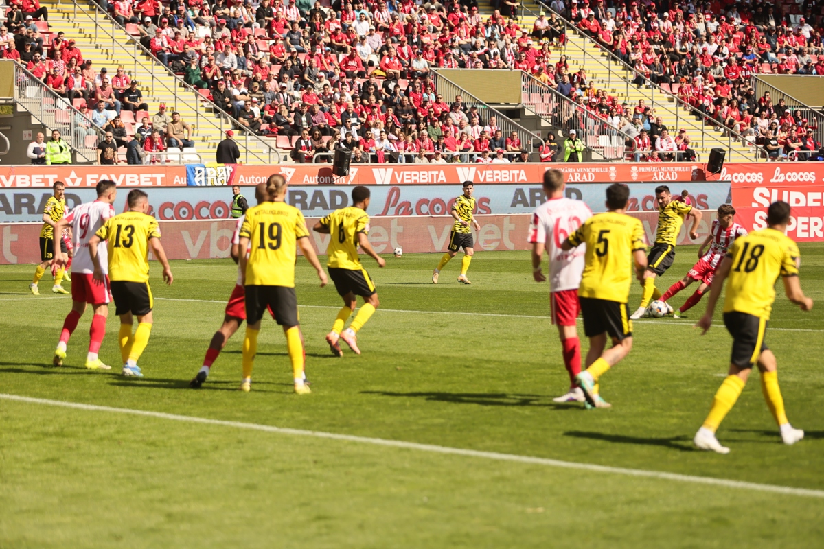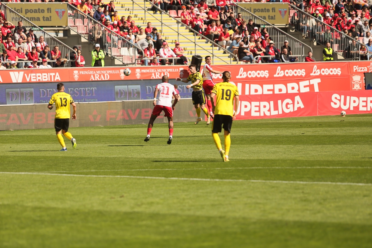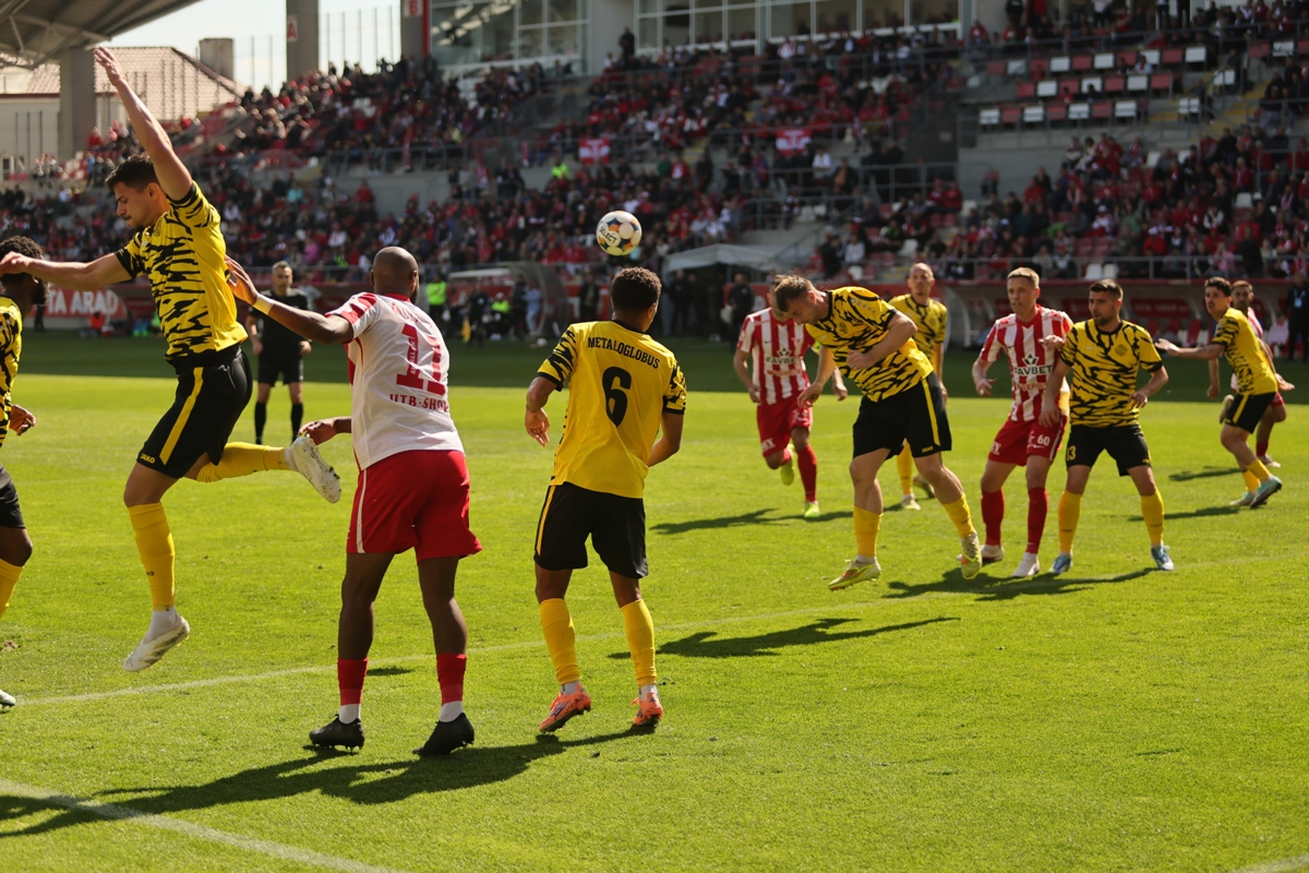 UTA Arad a oferit fanilor de pe stadionul „Francisc Neuman” o seară magică în etapa a 3-a a play-out-ului Superligii. Elevii lui Adrian Mihalcea s-au impus cu un categoric 5-1 în fața bucureștenilor de la Metaloglobus, într-un meci în care arădenii au controlat jocul de la primul până la ultimul fluier.